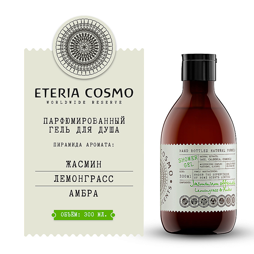 ETERIA COSMO Гель для душа Жасмин, лемонграсс и амбра - Антистрессовый, расслабляющий аромат.