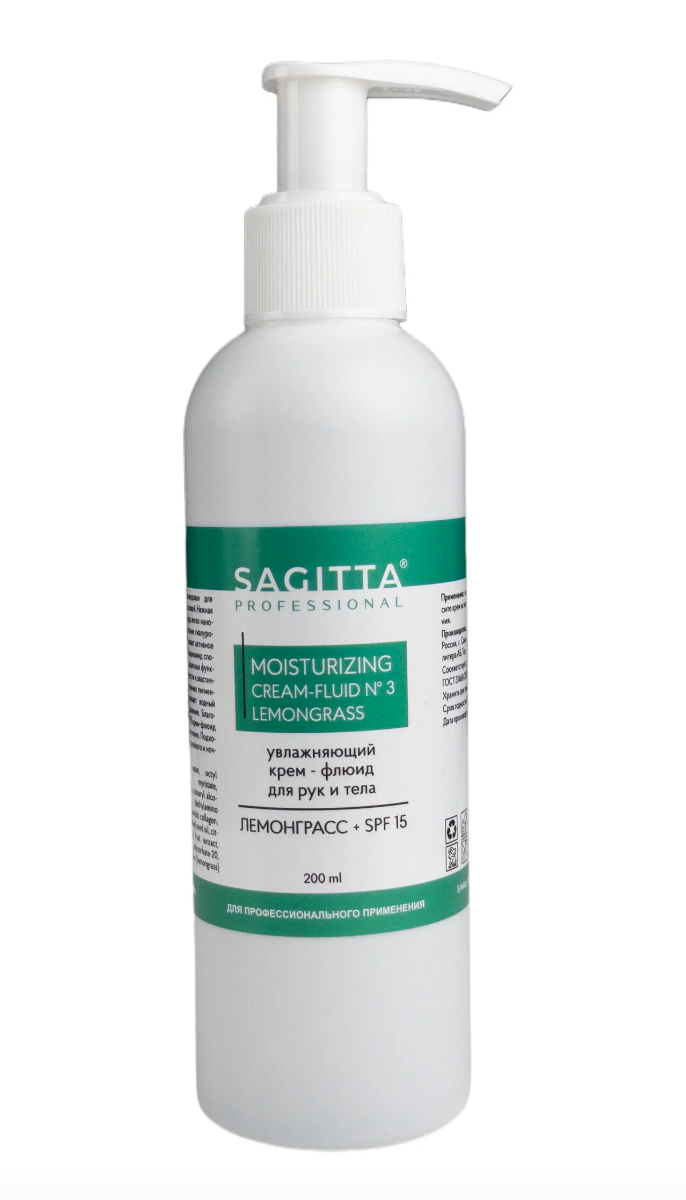 SAGITTA Professional Крем-флюид увлажняющий для руки и тела Лемонграсс + SPF15 - рекомендован для ежедневного интенсивного ухода за кожей.