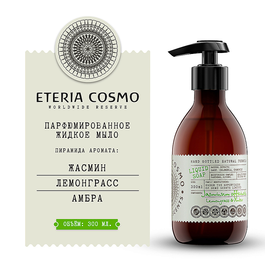 ETERIA COSMO Жидкое мыло Жидкое мыло Жасмин, лемонграсс и амбра - Антистрессовый, расслабляющий аромат.