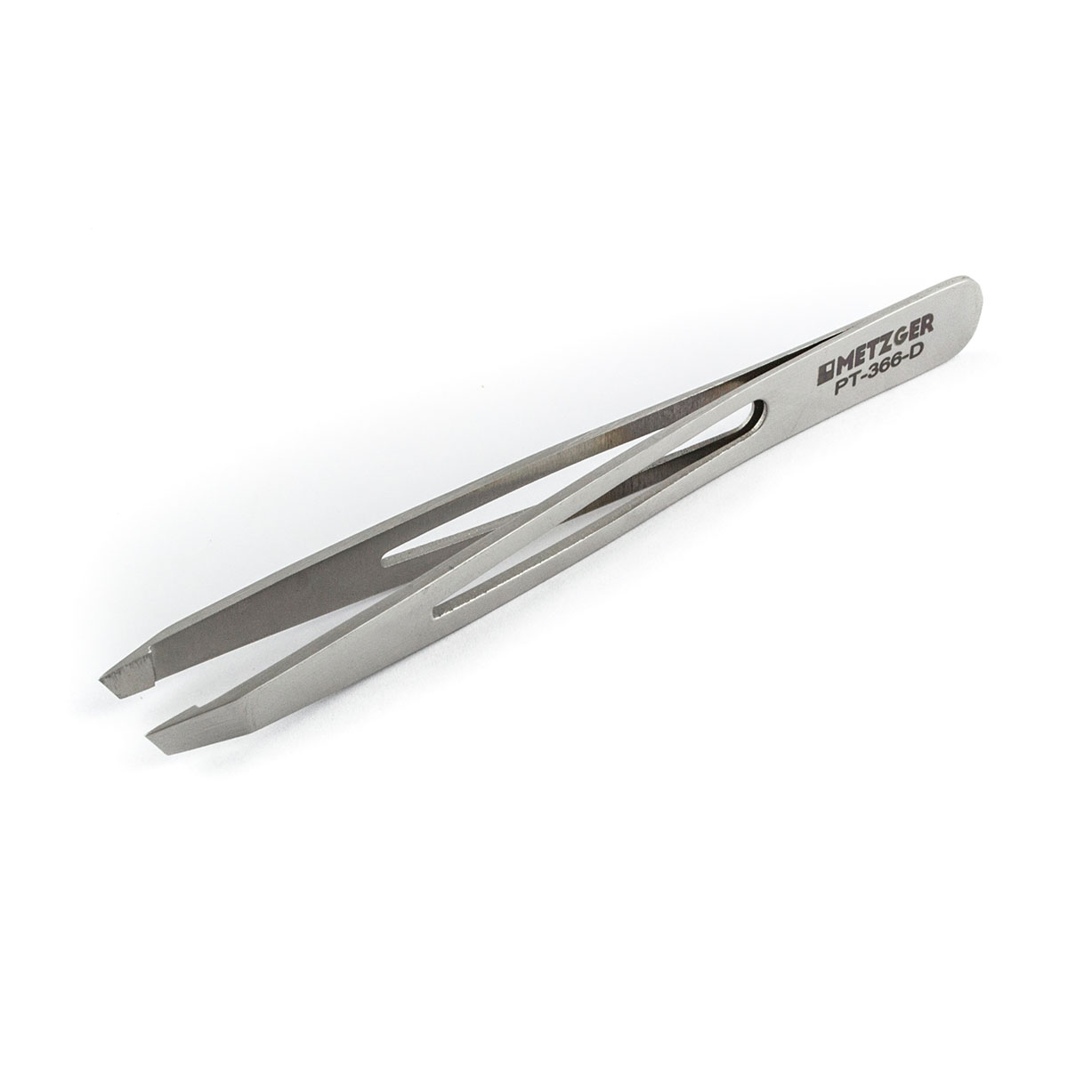 METZGER Пинцет - со скошенной кромкой изготовлен из высококачественной нержавеющей стали, что гарантирует прочность, долговечность и устойчивость к воздействию влаги и химических веществ.