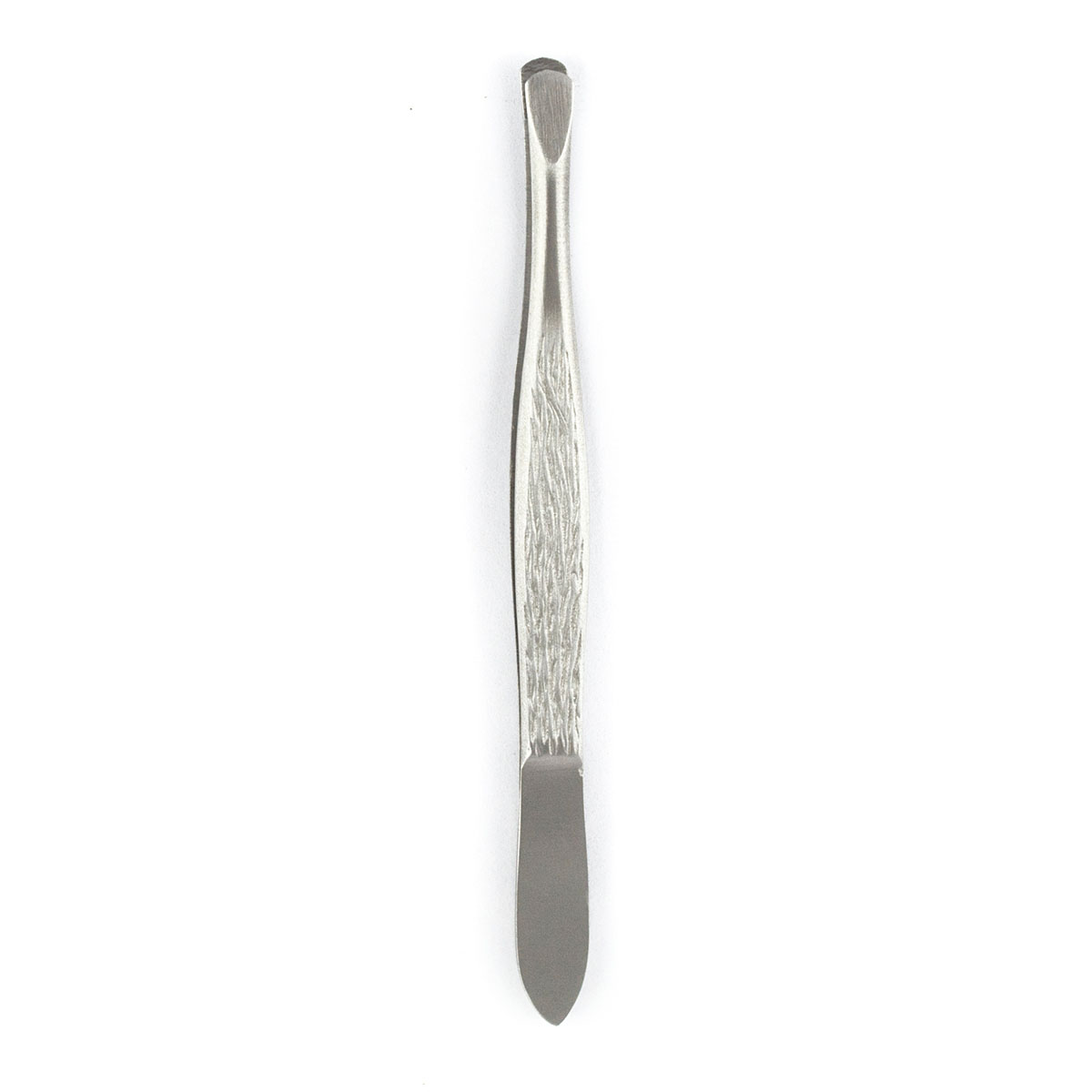 Изготовлен из высококачественной нержавеющей хирургической стали, что гарантирует его долговечность, устойчивость к коррозии и абсолютную гигиеничность. Матовое покрытие не только придает инструменту стильный современный вид, но и обеспечивает надежный антискользящий захват, позволяя точно контролировать каждое движение. Закругленный срез рабочей поверхности специально разработан для деликатных косметических процедур.