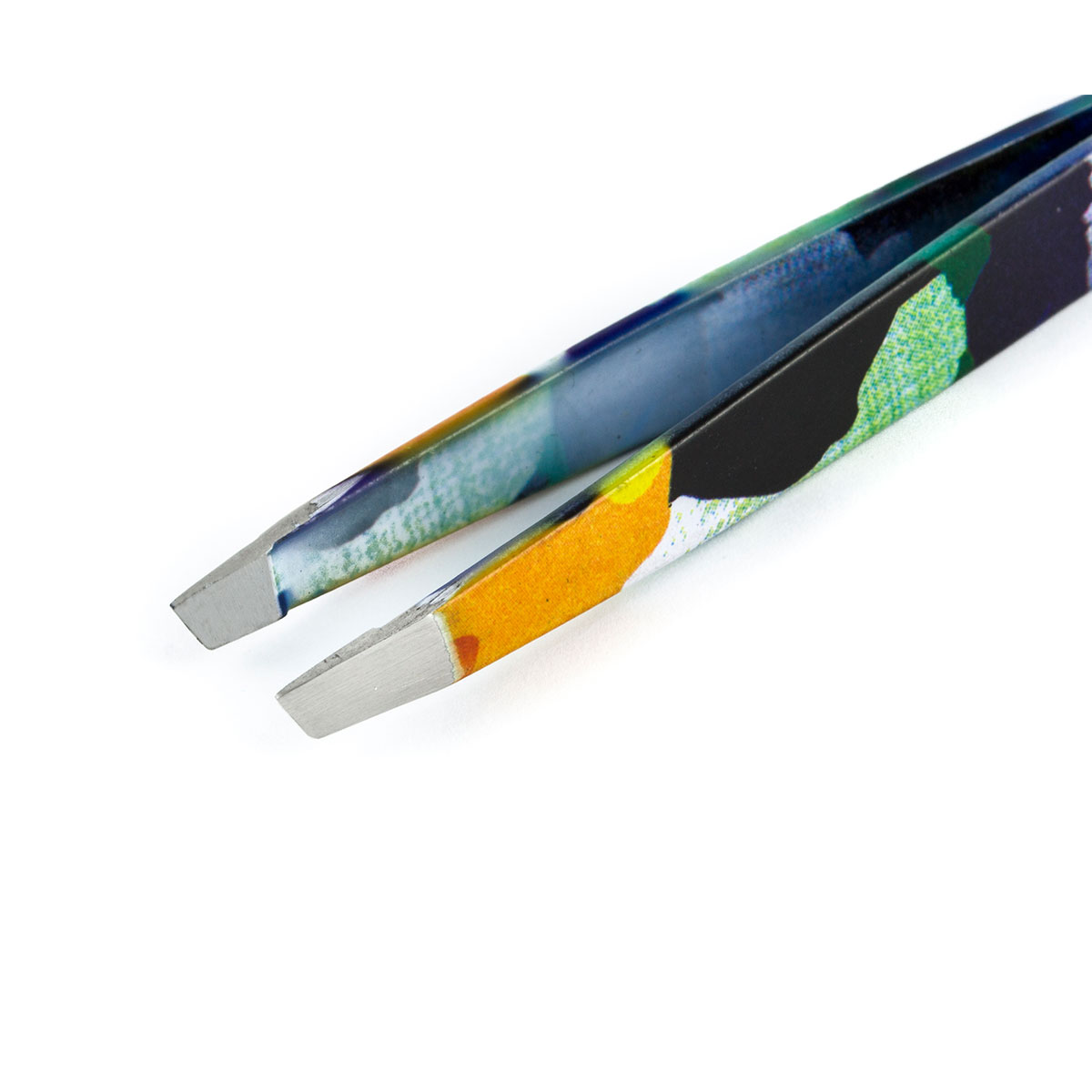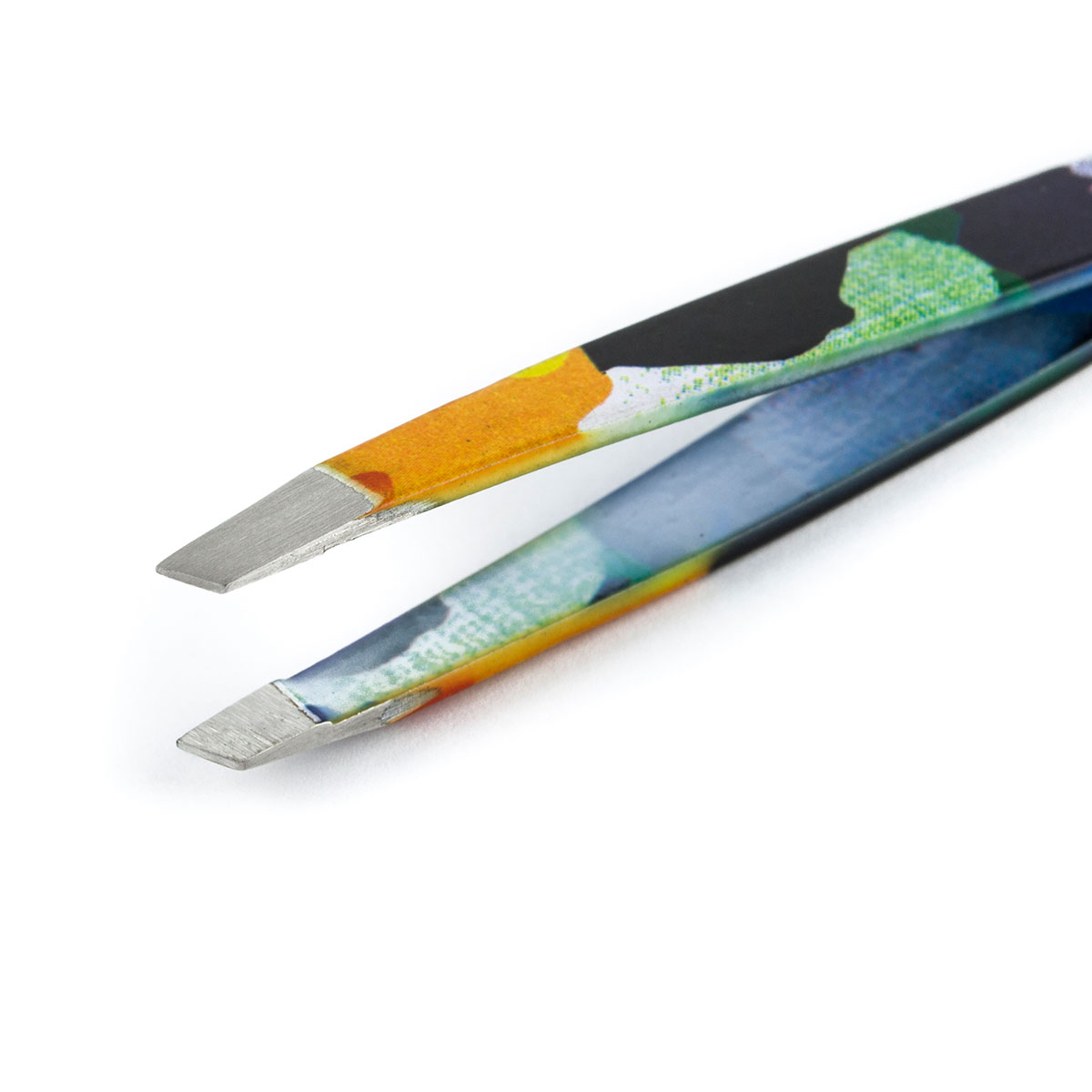 Скошенная рабочая поверхность обеспечивает идеальный угол для ювелирно точного захвата волосков, позволяя создавать безупречные линии бровей и аккуратно работать с ресницами, в то время как яркий художественный орнамент на ручках заряжает вдохновением и добавляет нотку индивидуальности вашему профессиональному образу.