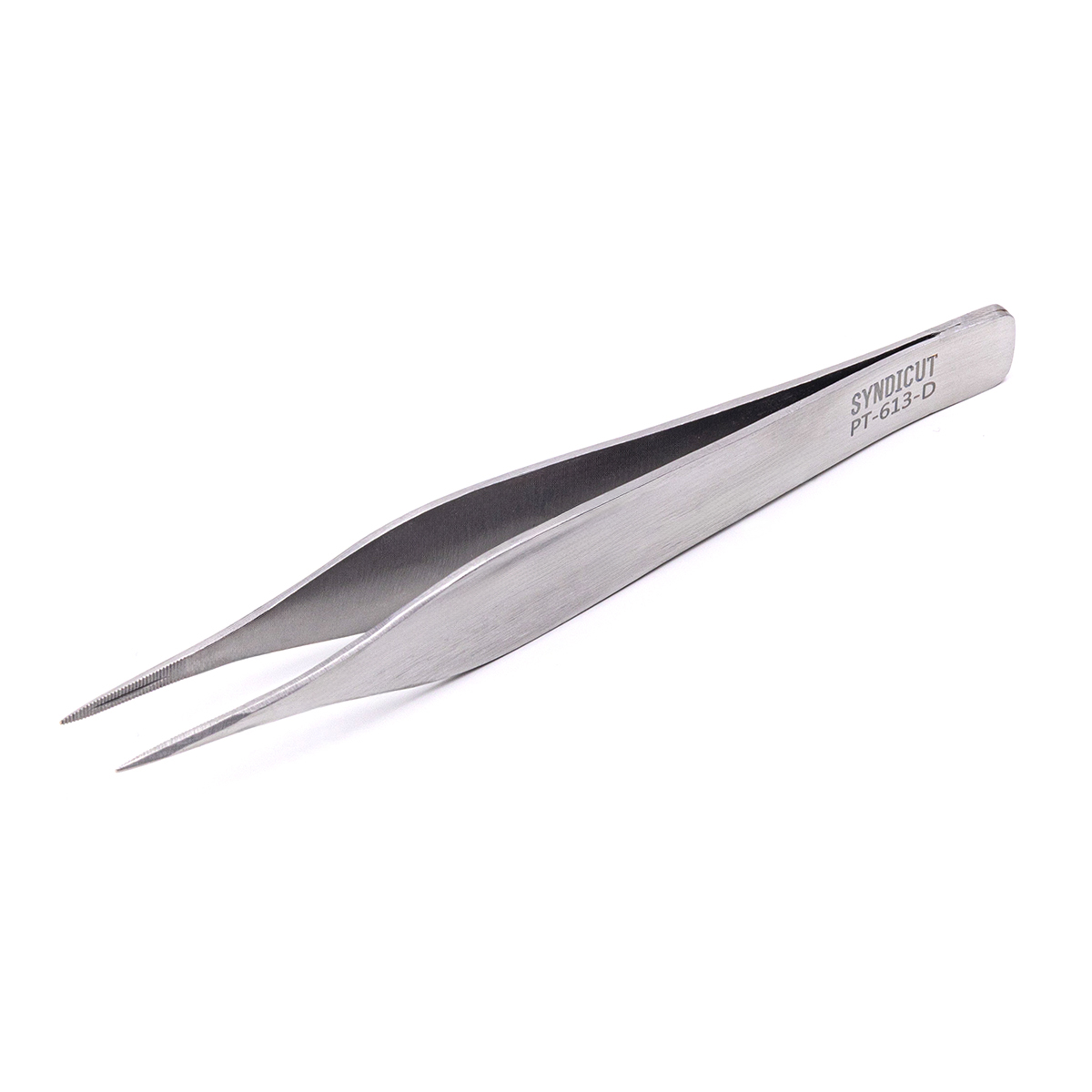 Специализированный пинцет создан для сложных подологических манипуляций, где требуется филигранная точность и абсолютный контроль. Его уникальная осколочная заточка (под углом 25-30°) с алмазной шлифовкой обеспечивает беспрецедентную остроту, позволяя выполнять ювелирные манипуляции с ногтевыми структурами. Микронасечки на рабочих поверхностях гарантируют надежную фиксацию даже скользких тканей и вросших фрагментов, исключая соскальзывание во время процедур.