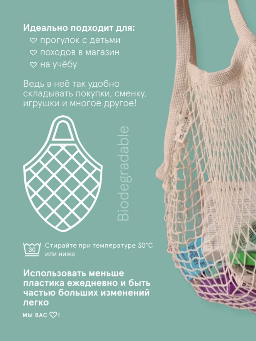Плетеная сумка многоразового использования изготовлена из биоразлагаемого органического хлопка, что делает её износостойкой и чрезвычайно прочной!