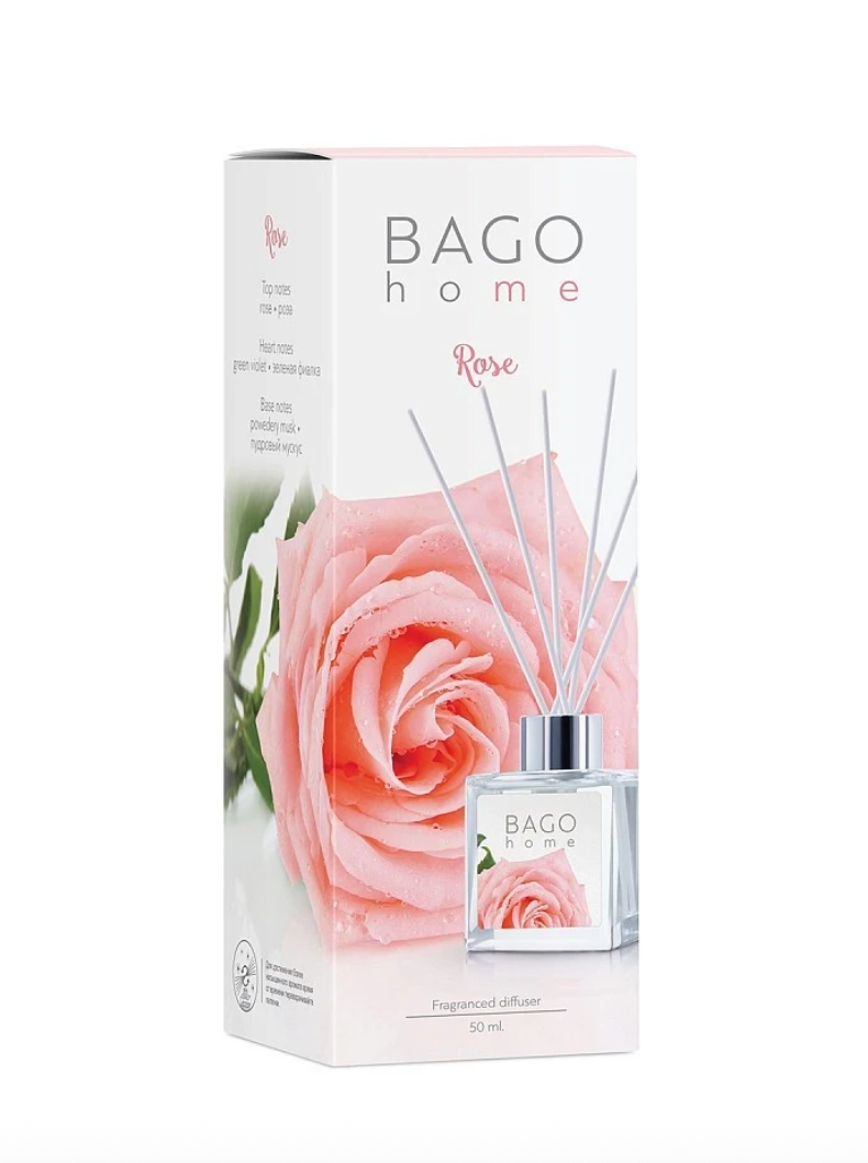 BAGO home Диффузор ароматический Роза - это нежнейший аромат королевы цветов - розы - в обрамлении тонов свежести зеленых листьев фиалки и загадочных сладковато-древесных мотивов ее цветов.