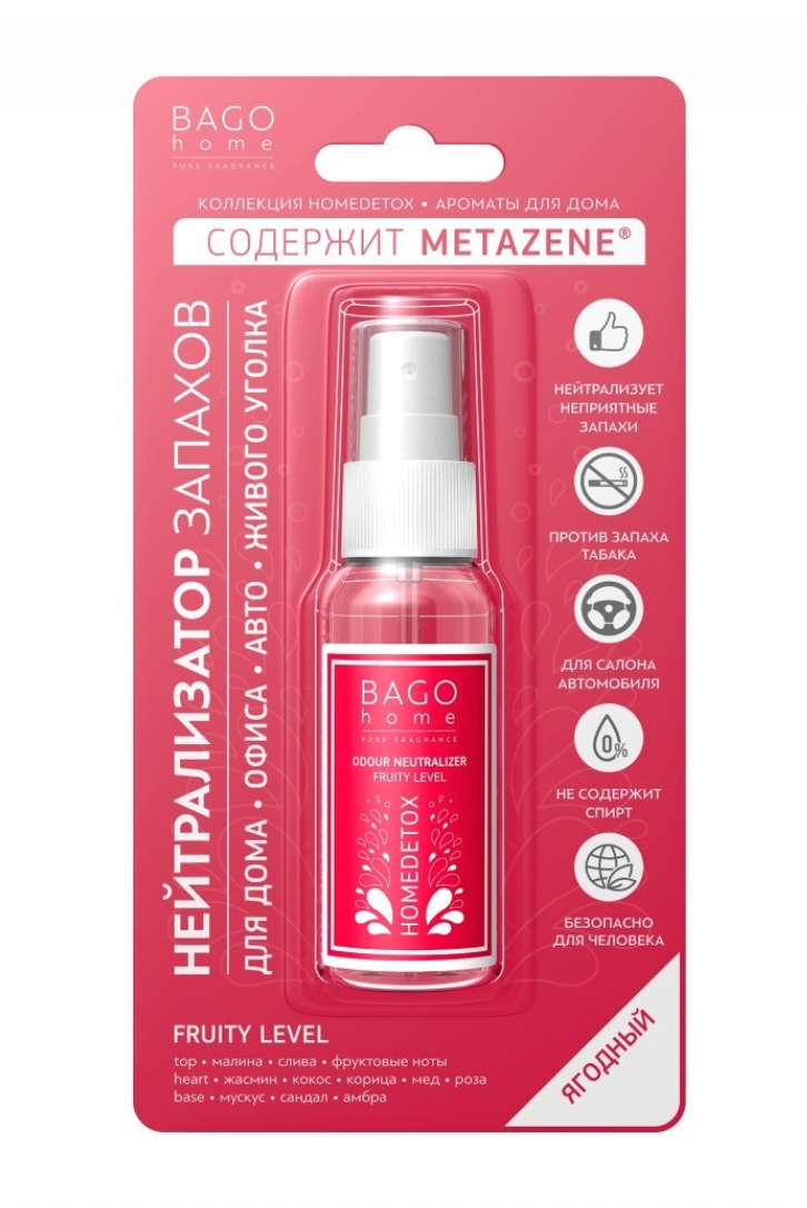 BAGO home Спрей ароматический Фруктовый детокс - Сладкий ягодный аромат с цветочным дополнением.