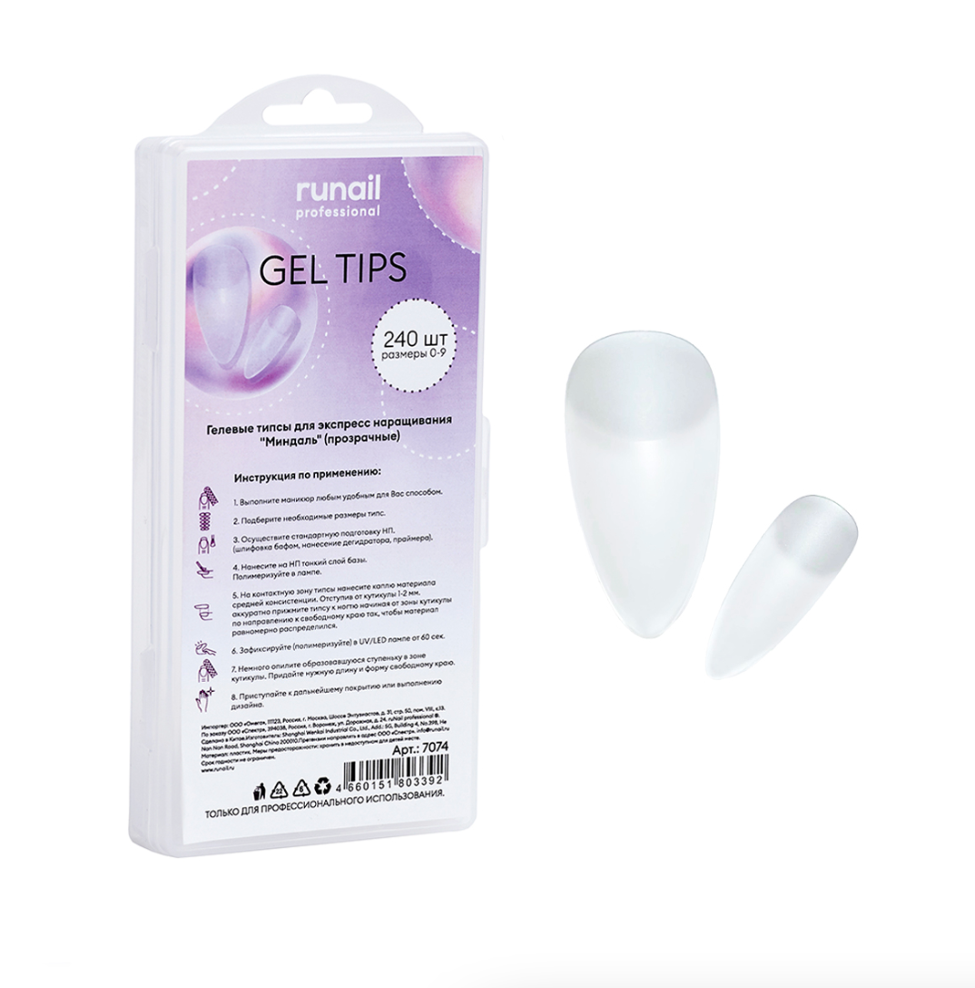 - 7074 RuNail Гелевые типсы Миндаль прозрачные, 240 шт.