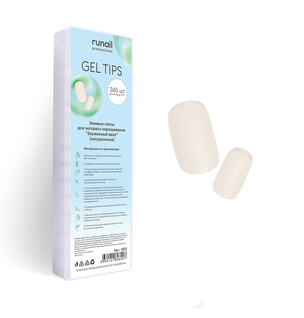 - 7633 RuNail Гелевые типсы Зауженный овал, 360 шт.