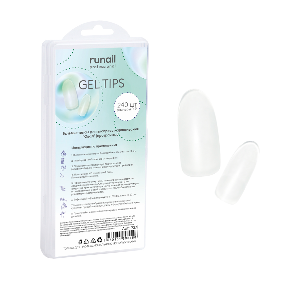 - 7371 RuNail Гелевые типсы ОВАЛ прозрачный, 240 шт.