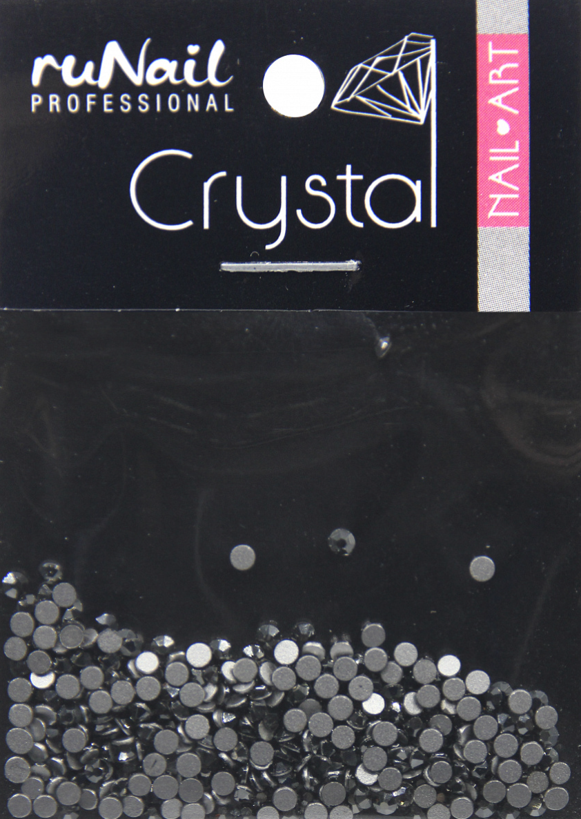 RuNail Стразы для дизайна ногтей - Черные кристаллы из стекла. Имеют круглую форму и несколько граней, которые преломляют лучи света и создают эффект сияющих драгоценных камней.