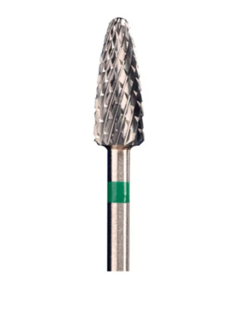 С крупной крестообразной нарезкой зубьев. Форма рабочей части конус, закругленный. Диаметр рабочей части 5.0 мм. Длина рабочей части 13 мм. Твердосплавная фреза применяется для аппаратного маникюра, снятия гель-лака и других полимерных покрытий, обработки загрубевшей кожи. Насадки ТВС преимущественно используют при работе с искусственными (гелевыми или акриловыми) ногтями.
