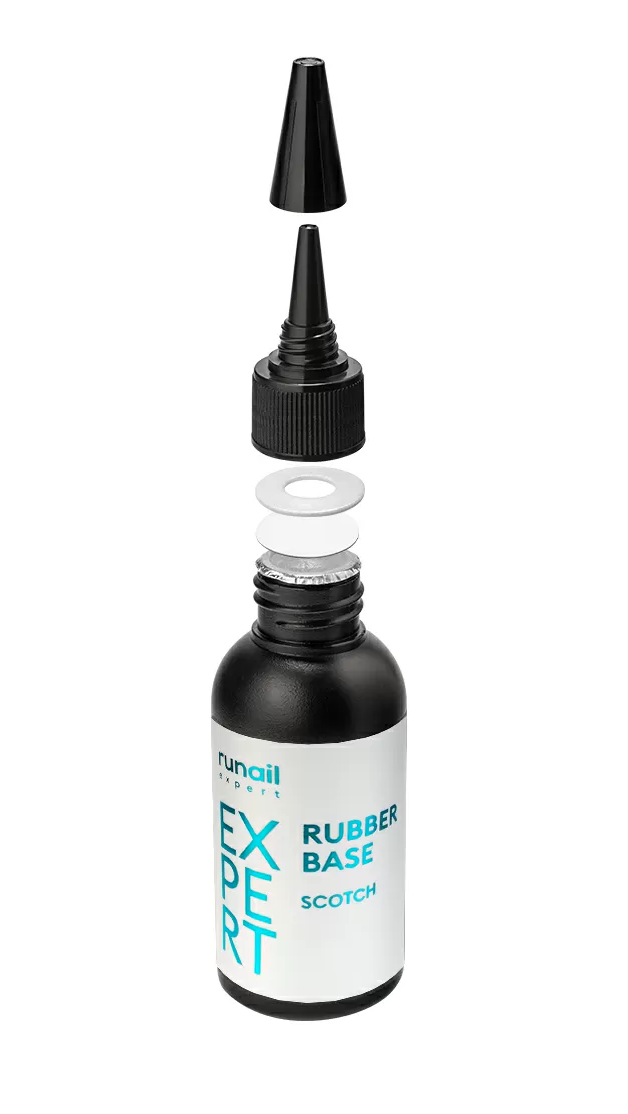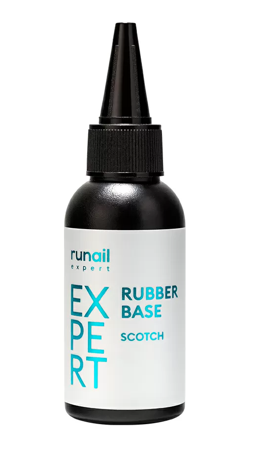 Безопасая среднекислотная формула (ph 3.5 - 4) базы Rubber base scotch runail expert подходит для работы даже с ослабленными ногтями.