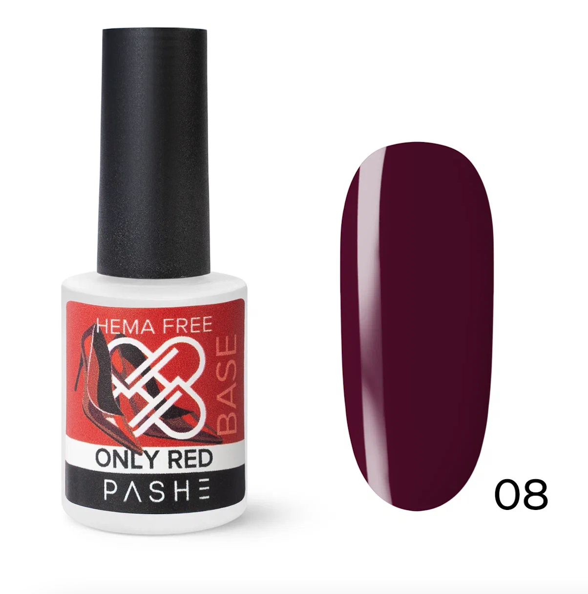 - PASHE База цветная Only Red каучуковая жесткая №08, 9 мл.