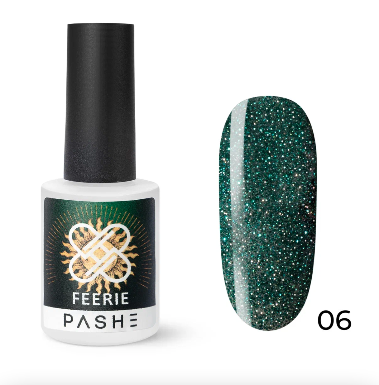 - PASHE Гель-лак Feerie светоотражающий №06 - пленительный изумруд, 9 мл.