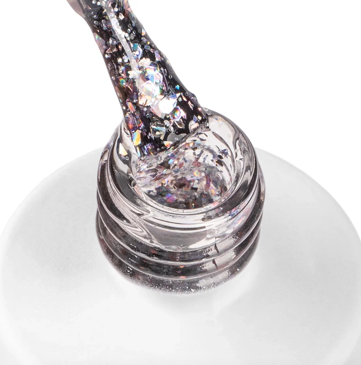 С голографическим глиттером. Благодаря своей высокой пигментированности отличается очень экономичным расходом, образуя глубокий и насыщенный цвет уже при нанесении в один слой. Формула гель-лака не содержит вредных ингредиентов, поэтому он не оказывает негативного влияния на здоровье ногтей.
