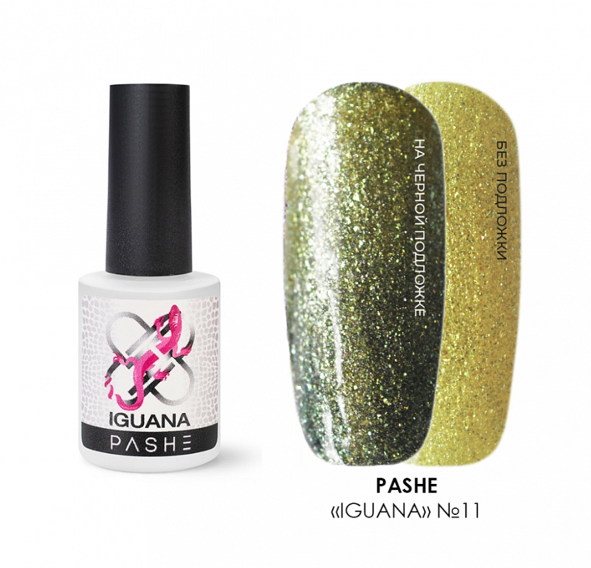 - PASHE Гель-лак Хамелеон Iguana №11 золотисто-желтый, 9 мл.