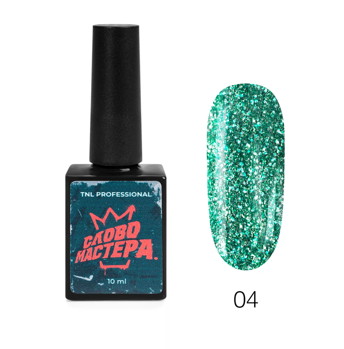 - TNL Гель-лак Слово Мастера с глиттером №04 - зеленоглазое такси, 10 мл.