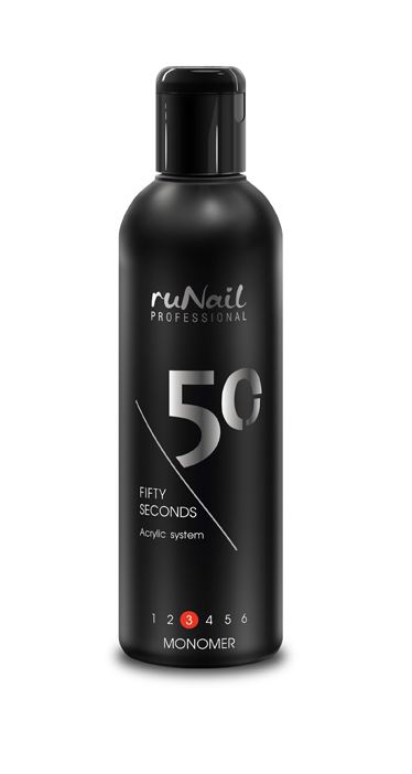 RuNail Мономер "50 seconds" - обеспечивает прочное сцепление акрилового покрытия и натуральной ногтевой пластины при наращивании ногтей.