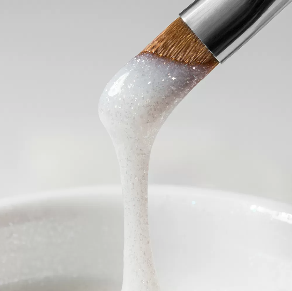 Высокая концентрация сверкающих частиц придаёт ногтям ослепительный блеск и сияние, сохраняет интенсивность блеска на протяжении всего срока носки.