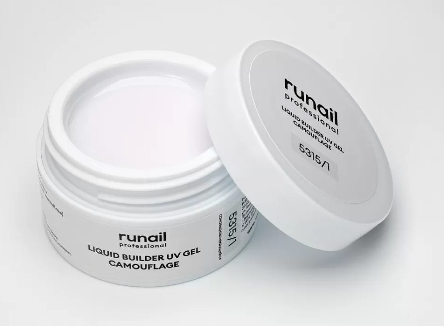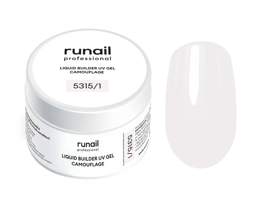 - 5315/1 RuNail Камуфлирующий Жидкий УФ-гель Молочный коктейль, 15 мл. банка