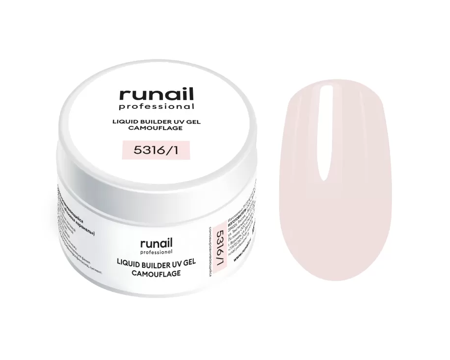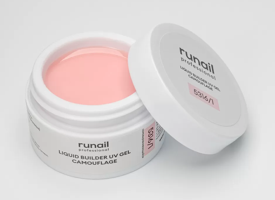 - 5316/1 RuNail Камуфлирующий Жидкий УФ Гель Розовая карамель, 15 мл. банка