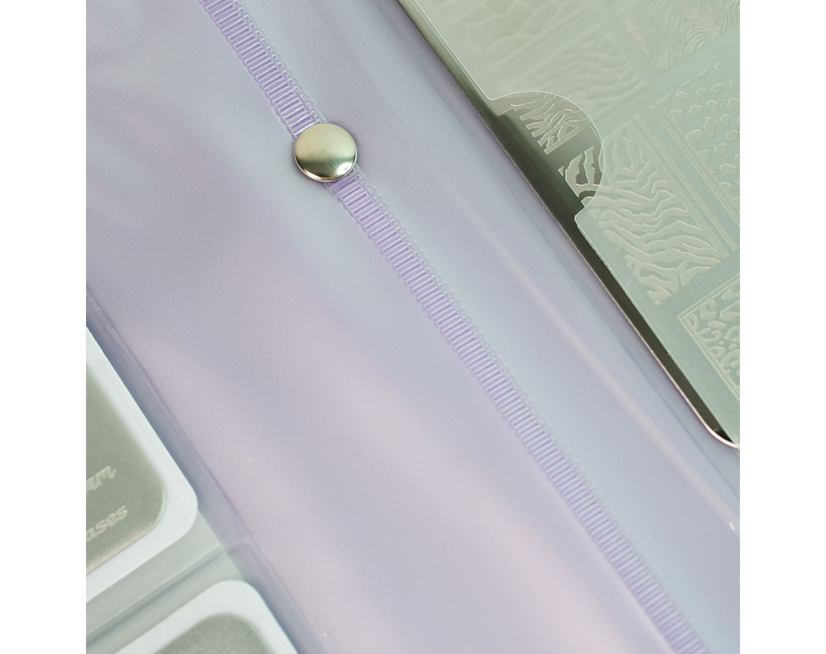 Организует рабочее пространство стемпингомана и упорядочит коллекцию. Используется для демонстрации клиенту имеющихся в ассортименте пластин, кейс для хранения заполняется ластинами по различным тематическим направлениям: пластины с цветами, пластины граффити, пластины с животным принтом и другие. Можно собрать пластины по сезонным тематикам: летние пластины для стемпинга, осенние пластины для стемпинга, зимние пластины для стемпинга и весенние плитки для стемпинга.