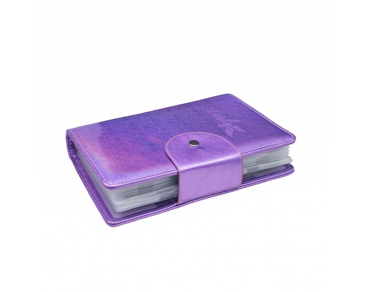 Органайзер выполнен в форме папки с матовыми листами-слотами: 30 слотов для прямоугольных пластин 6*12 см и 20 больших файлов для пластин размером 8*12 и 14,5*9,5 см.