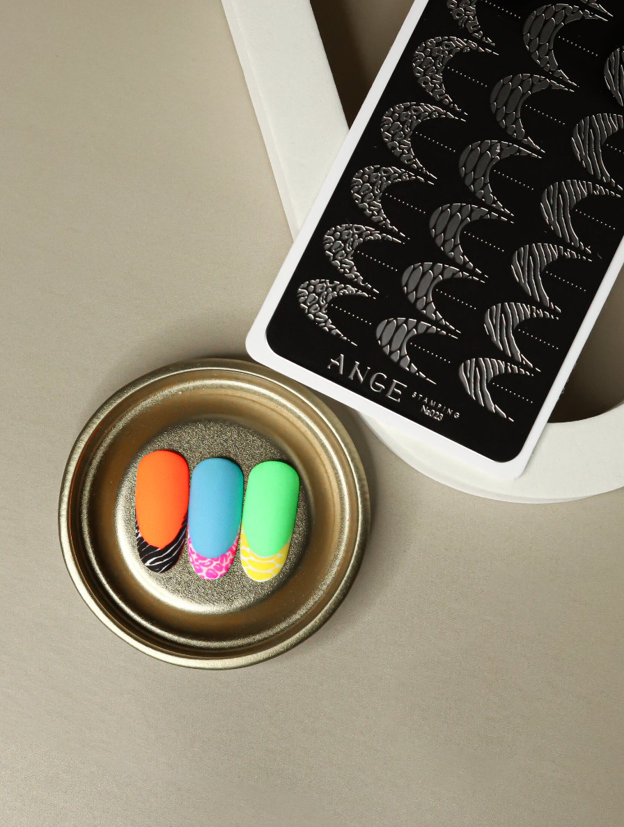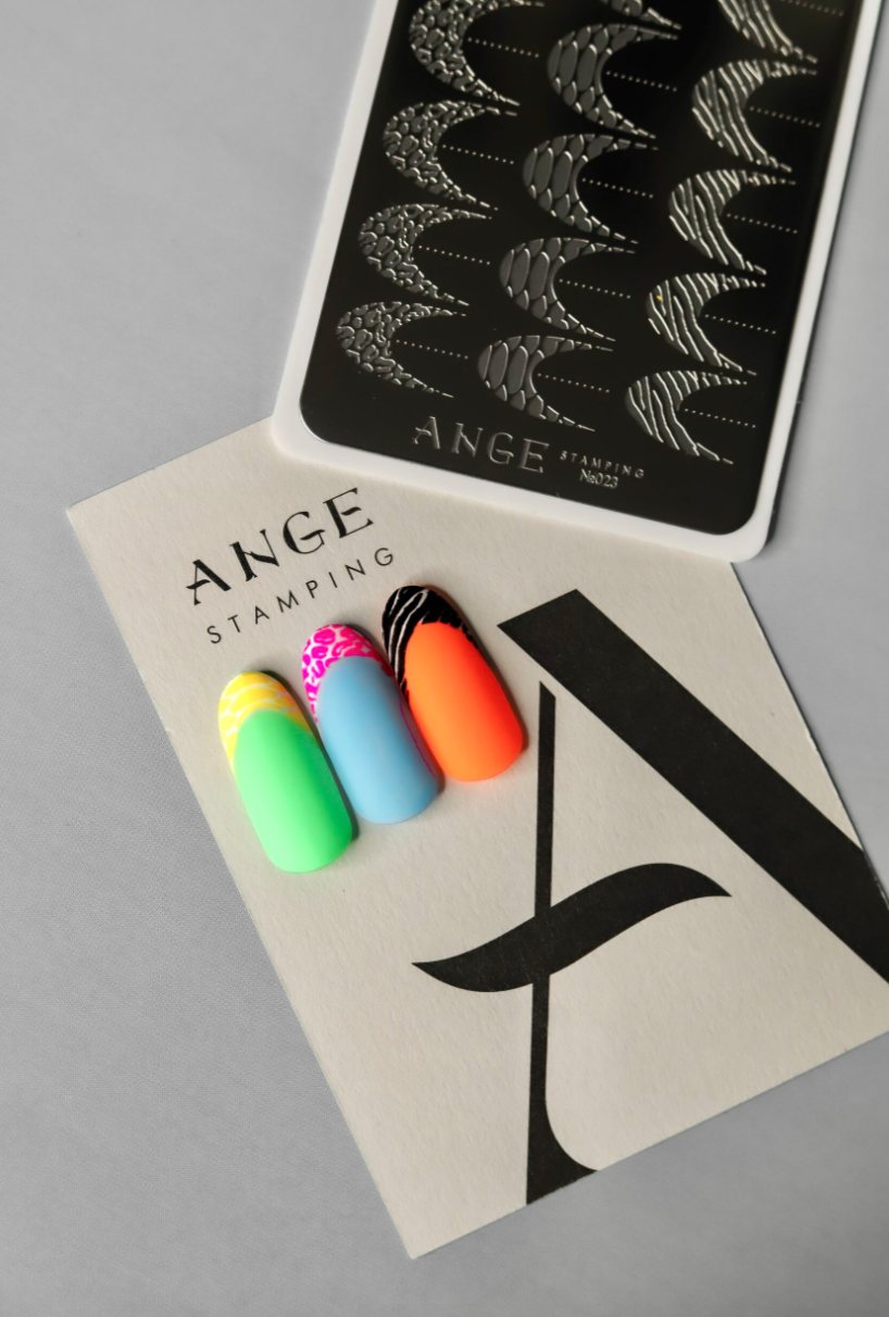 ANGE Пластина для стемпинга Анималистичный френч - имеет высокое качество гравировки рисунка, что позволяет без проблем переносить и отпечатывать даже самые маленькие изображения и тонкие линии.