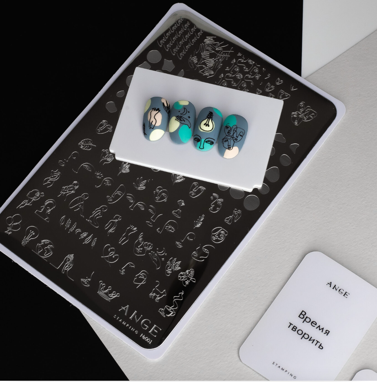 ANGE Пластина для стемпинга По стопам Пикассо - имеет высокое качество гравировки рисунка, что позволяет без проблем переносить и отпечатывать даже самые маленькие изображения и тонкие линии.