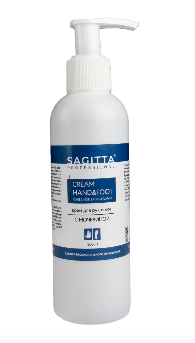 SAGITTA Professional Крем для рук и ног с мочевиной (карбамид и Гидрованс) - бережно ухаживает за кожей и помогает ей сохранять ощущение увлажненности и эластичности.