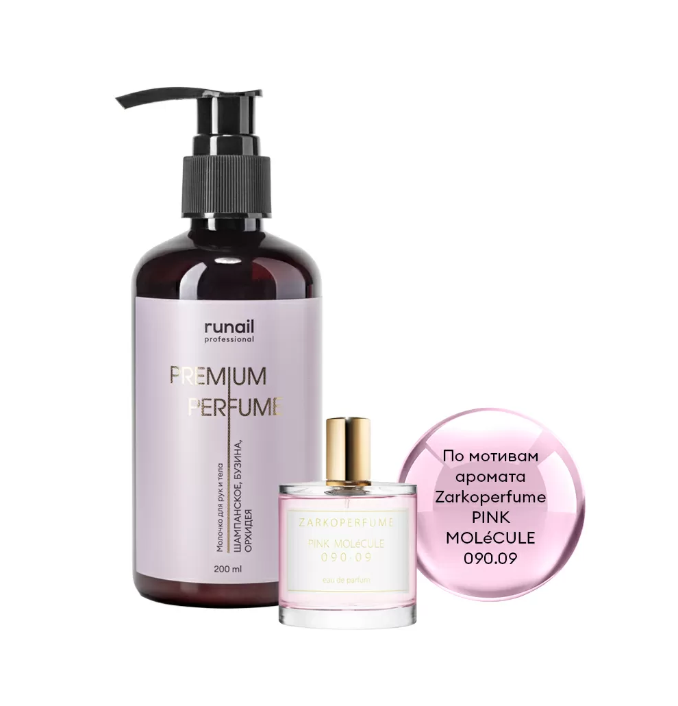 RuNail Молочко для рук и тела с мочевиной 10% PREMIUM PERFUME (аромат: шампанское, бузина, орхидея) - это не только ежедневный уход за кожей, но и возможность насладиться всеми оттенками чарующего парфюма.