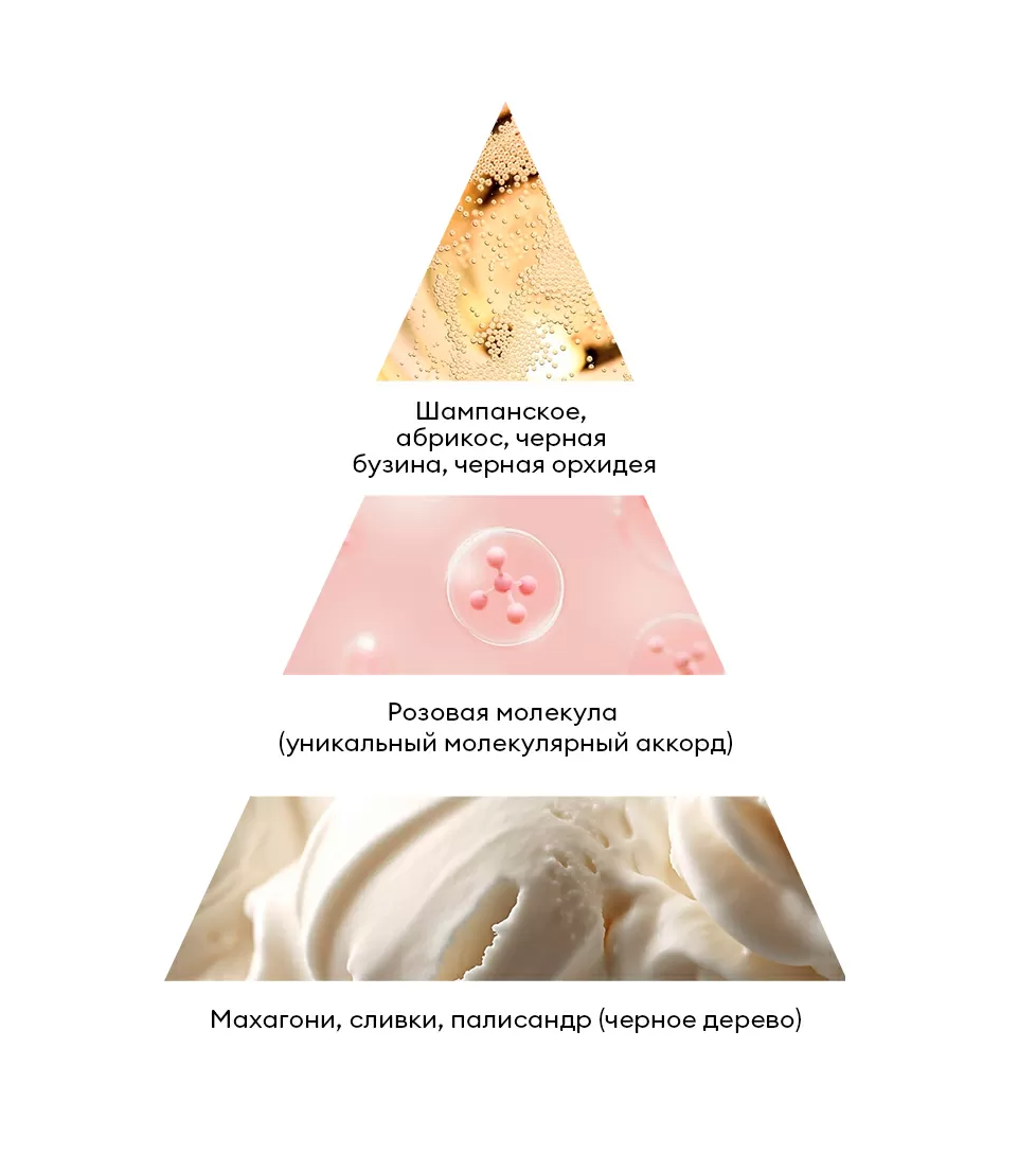 Базовые ноты взбитых сливок, черного дерева и махагони создают мягкий и обволакивающий шлейф, делая аромат одновременно легким и чувственным.