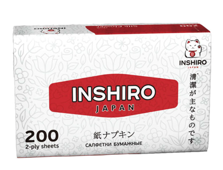 - INSHIRO Салфетки белые 2-х слойные в коробке, 200 шт.