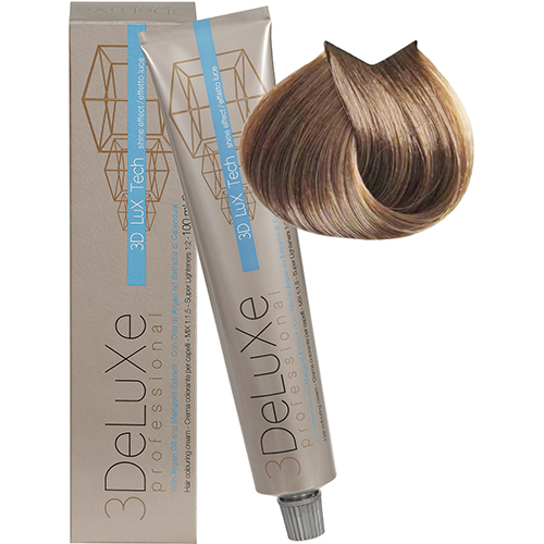 3DELUXE Итальянская профессиональная, высокопигментированная, стойкая Крем-краска для волос с экстрактом календулы, маслом арганы и аскорбиновой кислотой - обеспечивает интенсивный уход за волосами, обладает антиоксидантными, увлажняющими, стабилизирующими свойствами.