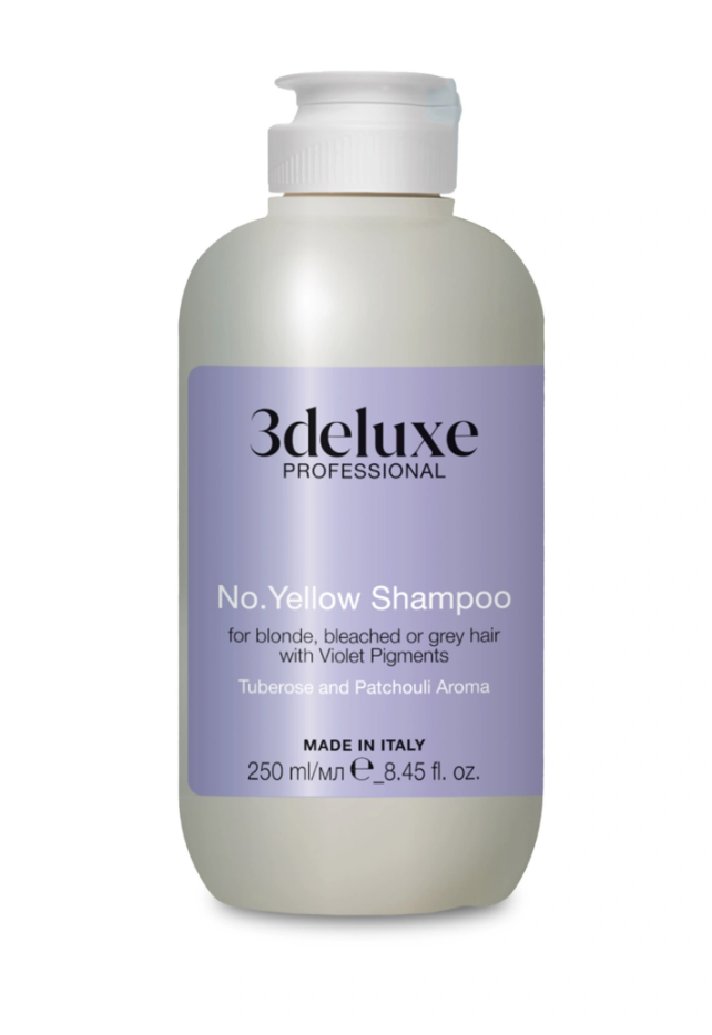 3DELUXE Антижелтый шампунь для светлых, осветленных, мелированных и седых волос - препятствует появлению нежелательного желтого тона, обеспечивая длительное сохранение холодного оттенка.