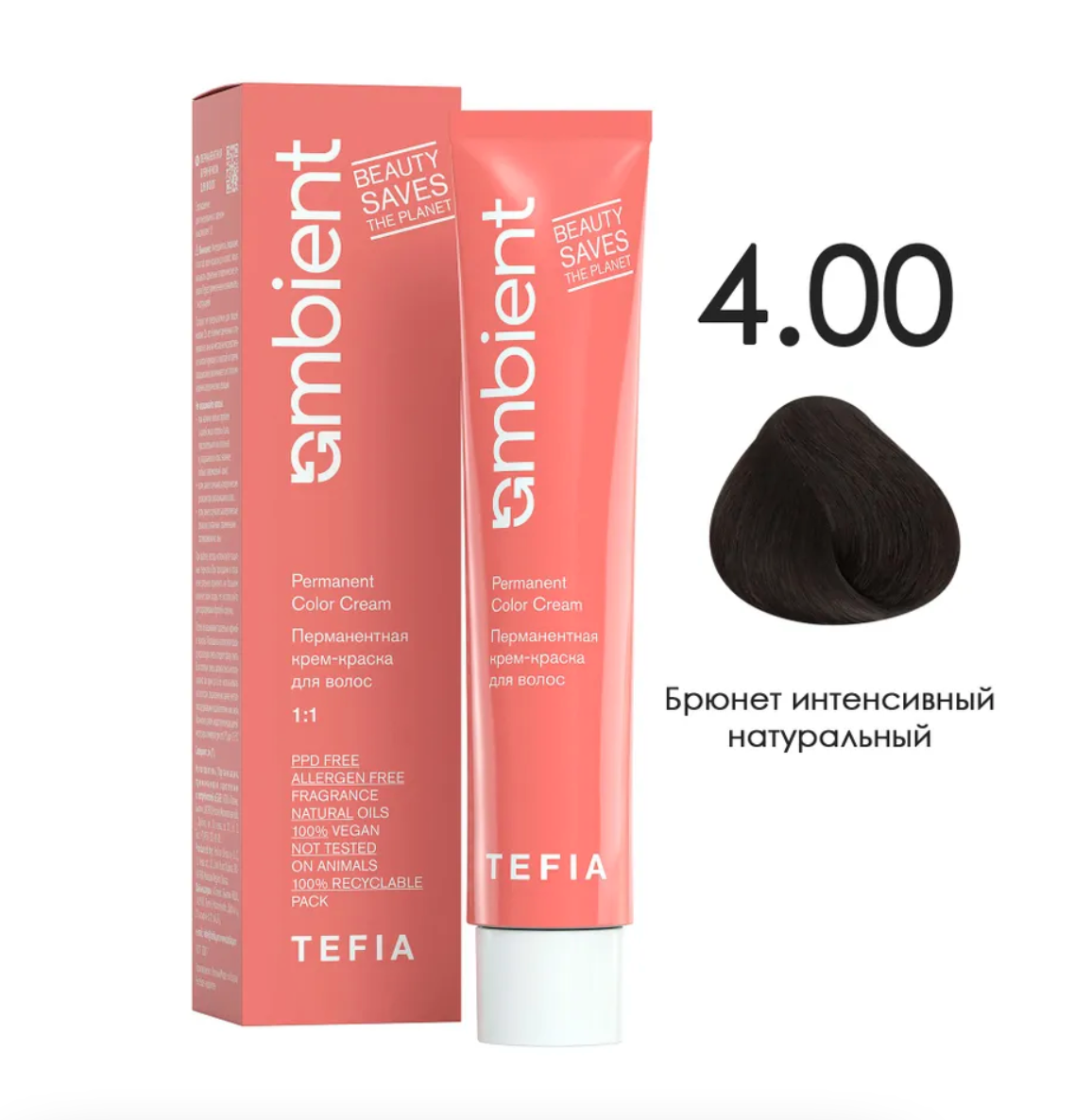 - TEFIA AMB Крем-краска 4.00 Брюнет интенсивный натуральный, 60 мл.