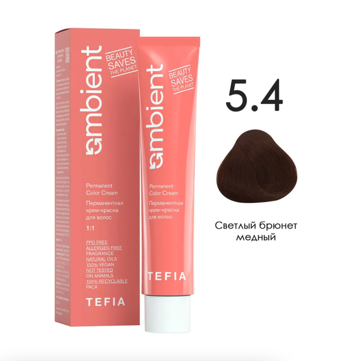 - TEFIA AMB Крем-краска 5.4 Светлый брюнет медный, 60 мл.