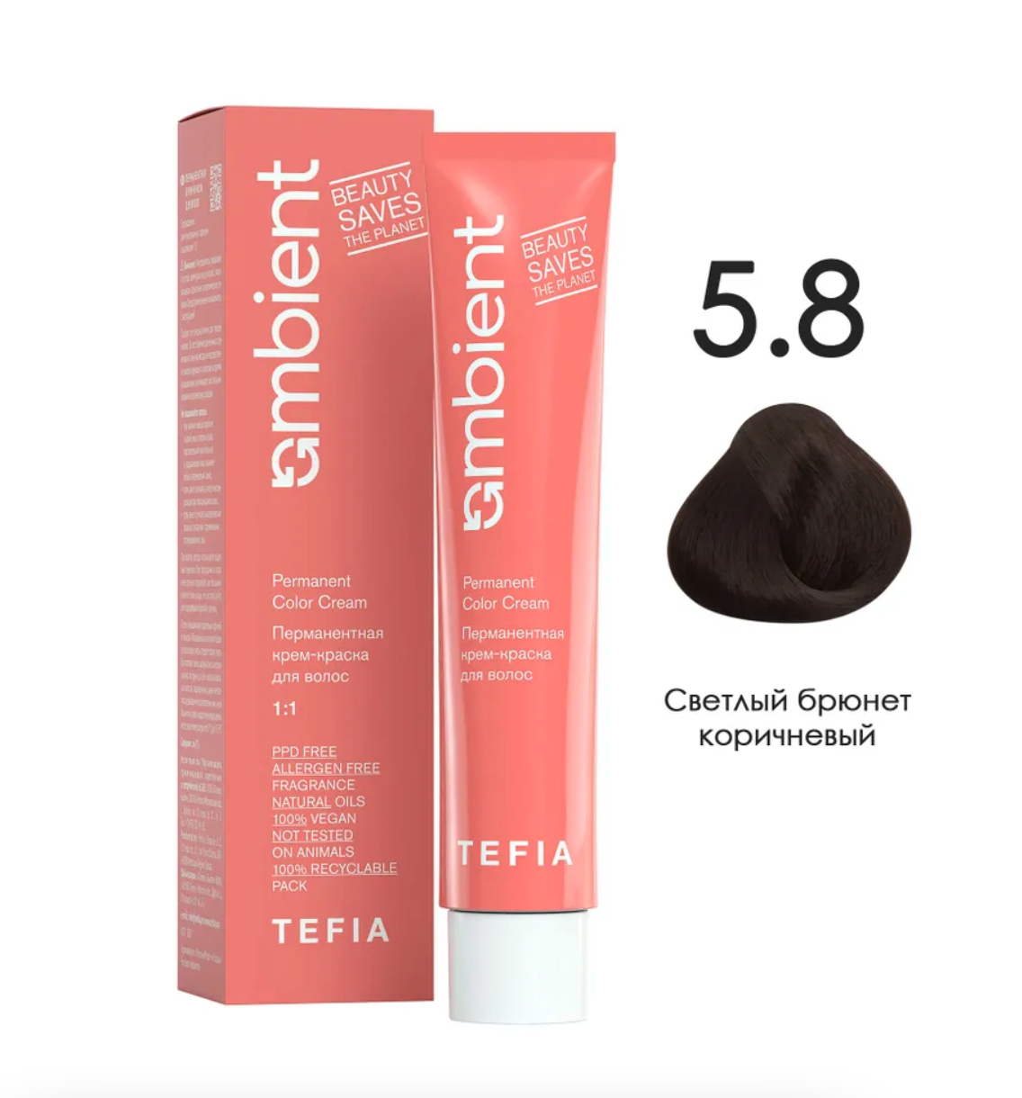 - TEFIA AMB Крем-краска 5.8 Светлый брюнет коричневый, 60 мл.