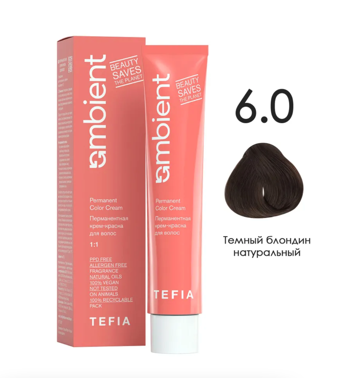 - TEFIA AMB Крем-краска 6.0 Темный блондин натуральный, 60 мл.