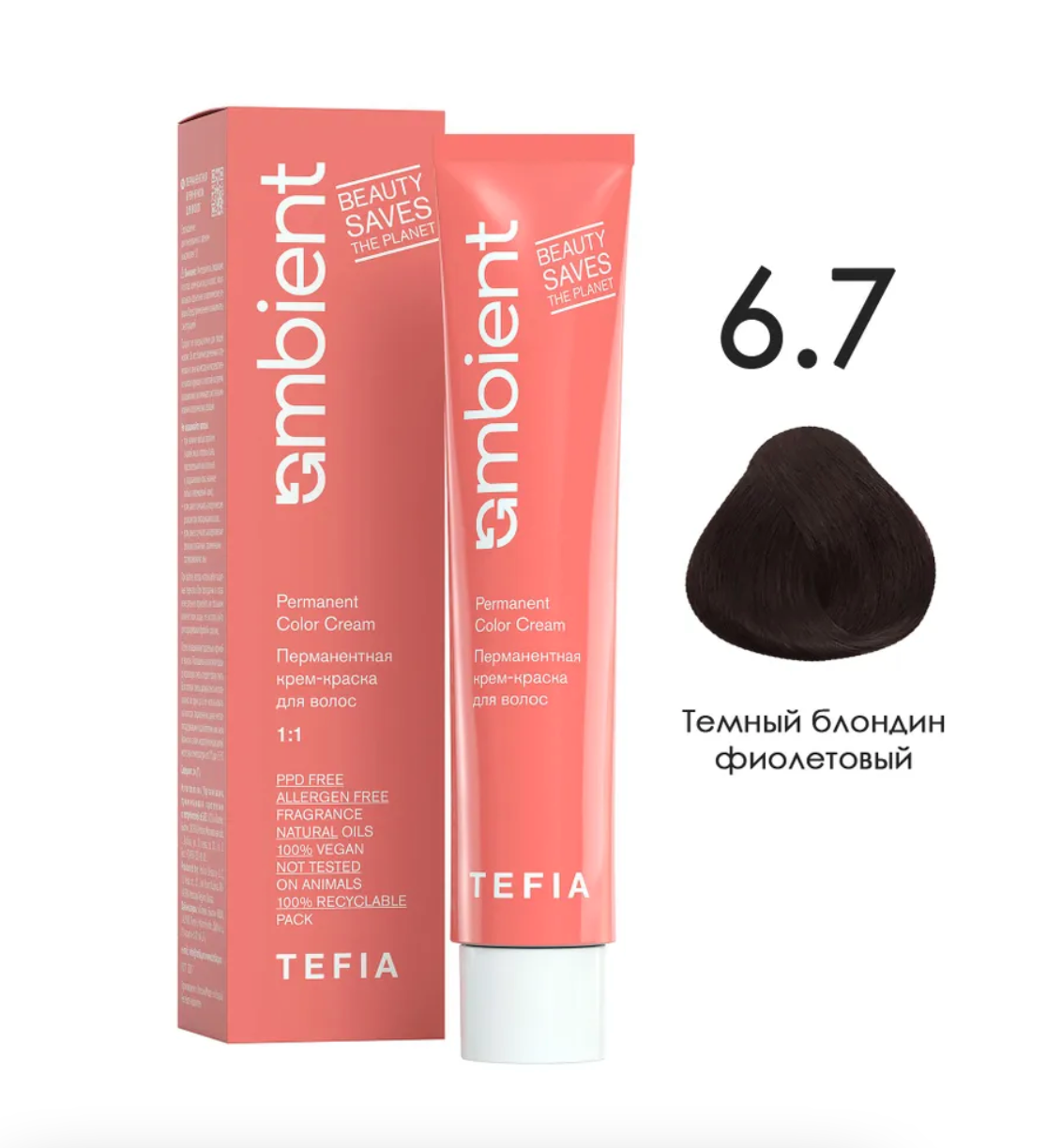 - TEFIA AMB Крем-краска 6.7 Темный блондин фиолетовый, 60 мл.
