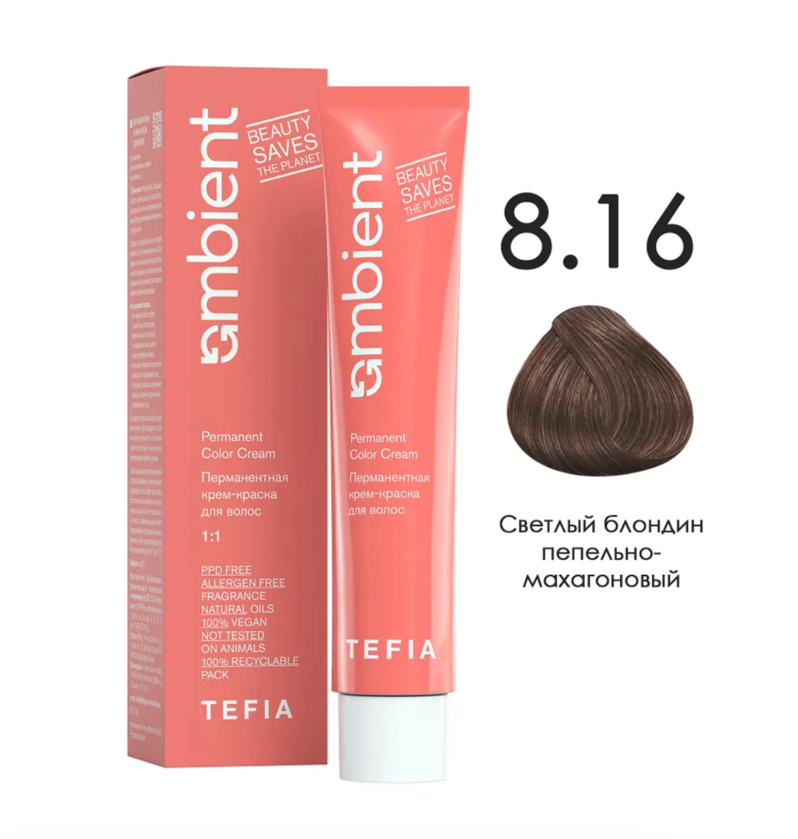 - TEFIA AMB Крем-краска 8.16 Светлый блондин пепельно-махагоновый, 60 мл.