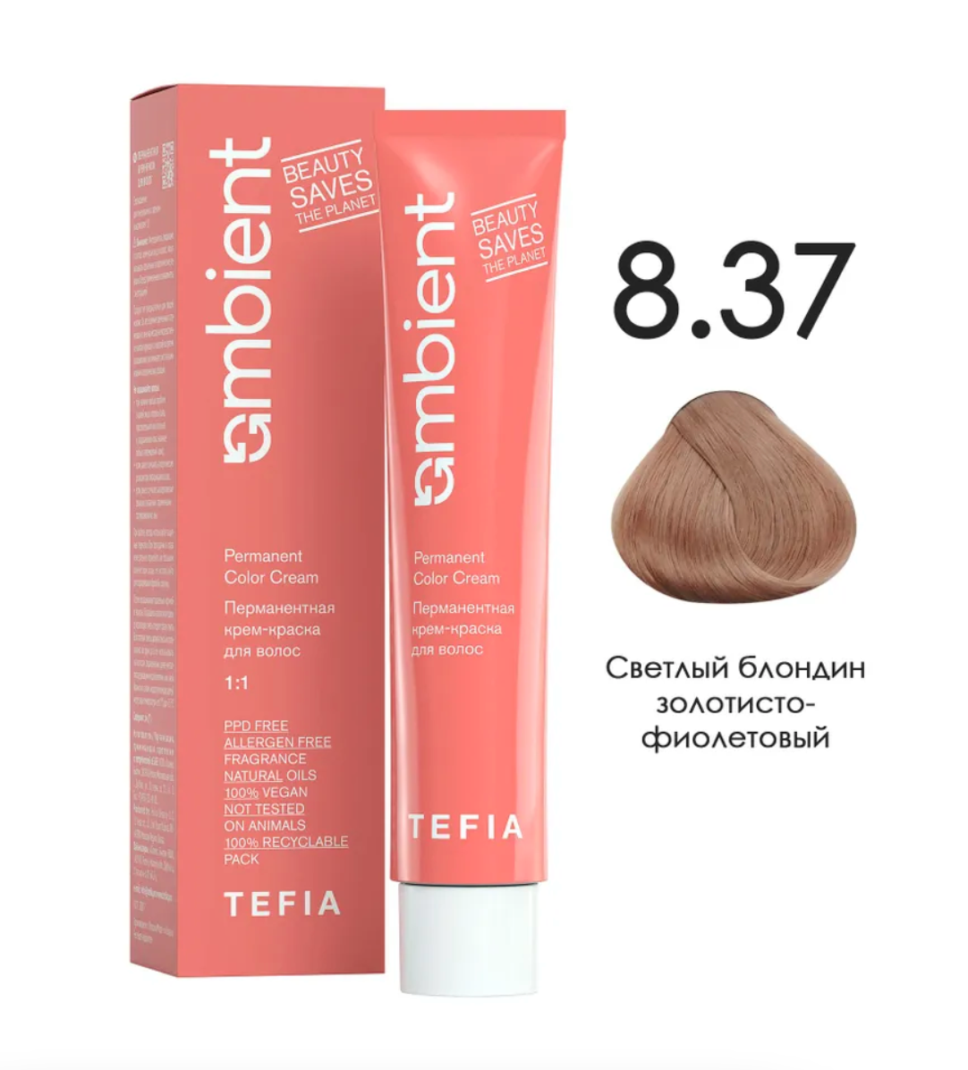 - TEFIA AMB Крем-краска 8.37 Светлый блондин золотисто-фиолетовый, 60 мл.