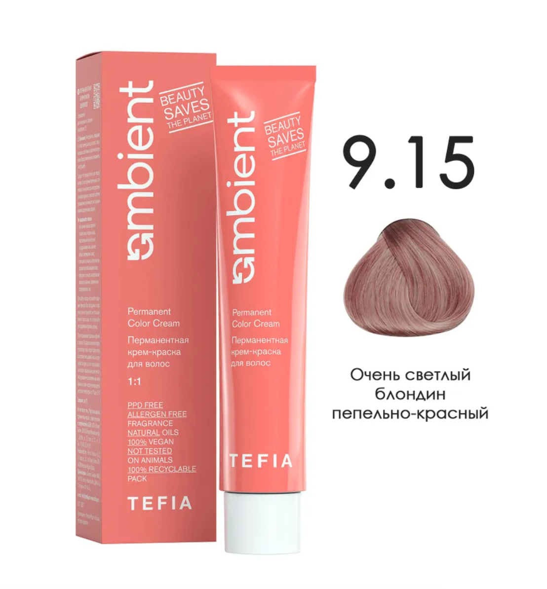 - TEFIA AMB Крем-краска 9.15 Очень светлый блондин пепельно-красный, 60 мл.