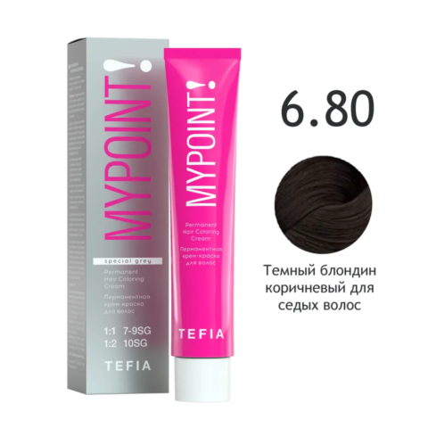 - TEFIA Крем-краска 6.80 Темный блондин коричневый для седых волос, 60 мл.