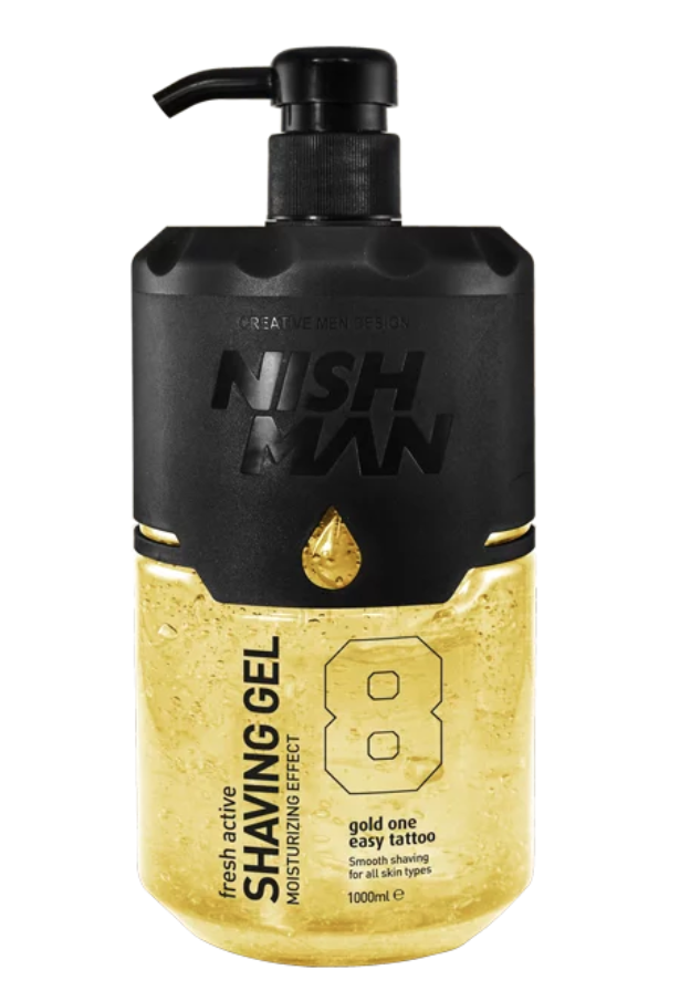 NISHMAN Освежающий гель для бритья 08 Gold one easy tattoo - обеспечивает идеальное скольжение бритвы, смягчает бороду и щетину.