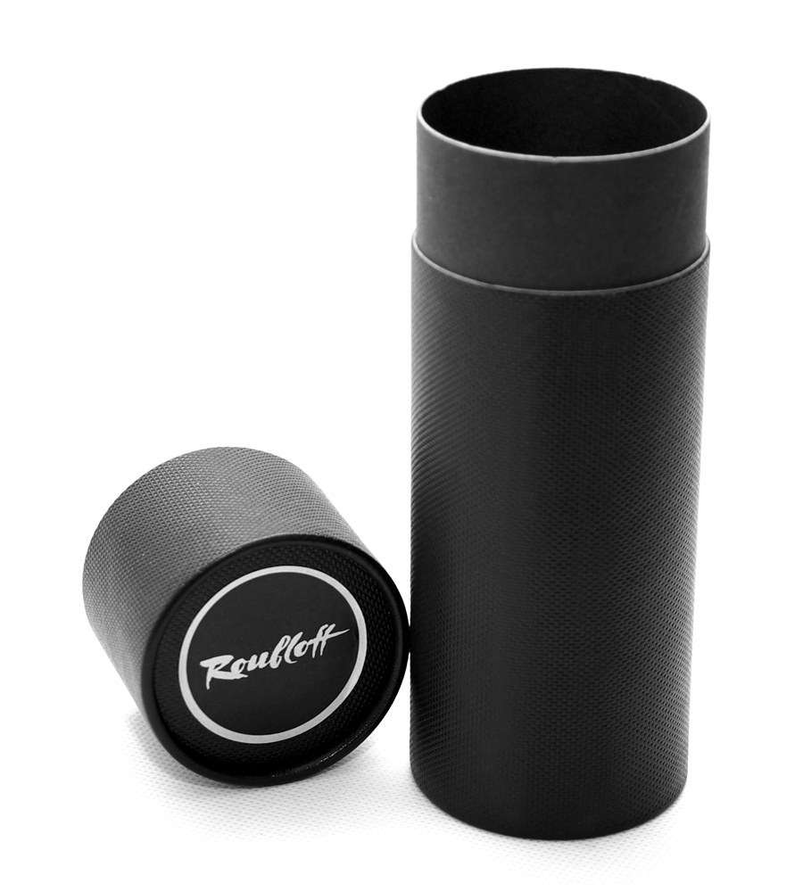 Фирменный тубус Roubloff изготовлен из плотного картона, а также обёрнут чёрной матовой узорчатой бумагой, что придаёт ему дополнительную прочность.