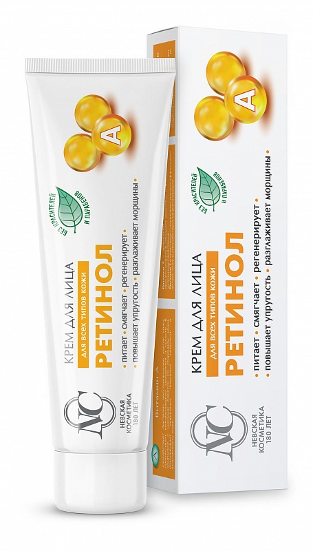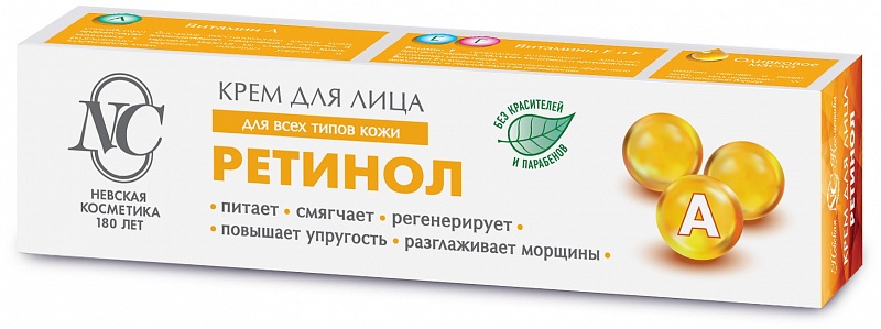 Невская Косметика Крем для лица Ретинол для всех типов кожи - Питает, смягчает, регенерирует, улучшает цвет лица, повышает упругость, устраняет шелушения, разглаживает морщинки.