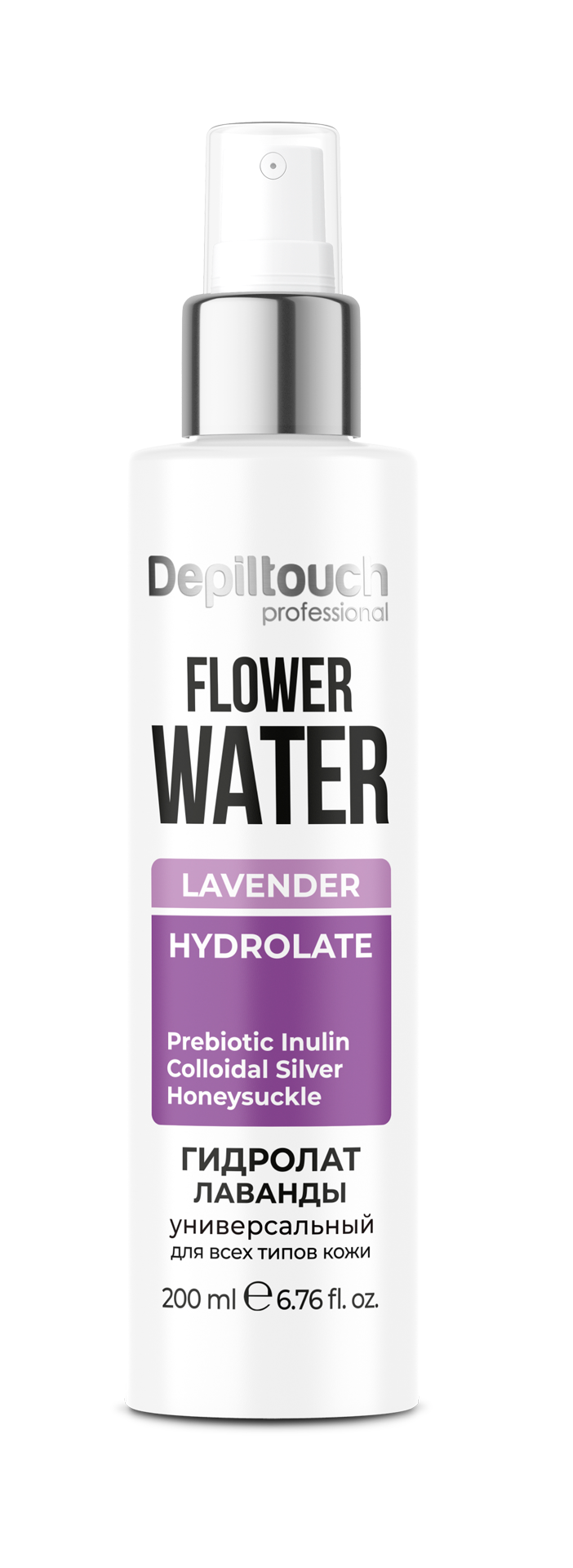 Depiltouch Professional Лосьон гидролат Лаванды универсальный для лица и тела для всех типов кожи - Натуральный гидролат, дистиллят из душистых цветов лаванды с полей Крыма, обогащенный пребиотиками и серебром, освежает кожу, интенсивно увлажняет, уменьшает шелушение, снимает зуд и устраняет усталый вид.
