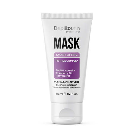 Depiltouch Professional Маска-лифтинг Омолаживающая для лица с пептидами-биомиметиками - содержит мультипептидный биомиметический комплекс, гиалуроновую кислоту, SMART систему заполнения морщин на основе акмеллы, тонизирующие масла клюквы и зеленого кофе, а также мощный природный антиоксидант ресвератрол.