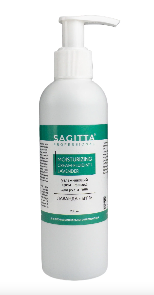 SAGITTA Professional Крем-флюид увлажняющий для руки и тела Лаванда + SPF15 - рекомендован для ежедневного интенсивного ухода за кожей.